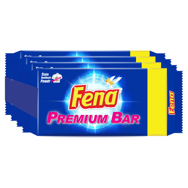 Fena Detergent Bar (Pack of 4) delivers strong stain removal and bright cleaning. Ideal for daily hand-wash laundry at home.